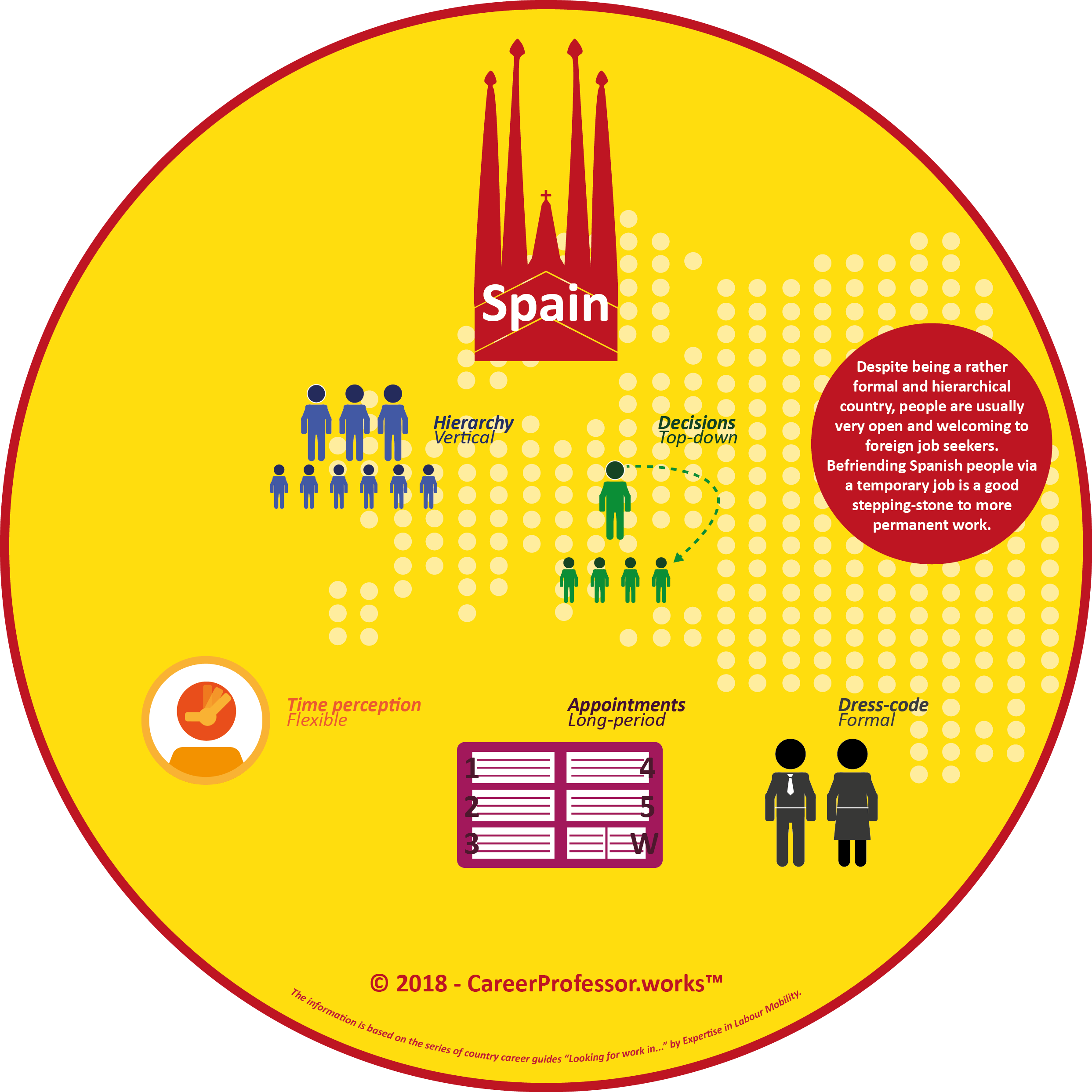 This CareerProfessor.works infographic will present some things you need to know about the Spanish working environment. Click here for a legend of the infographic.