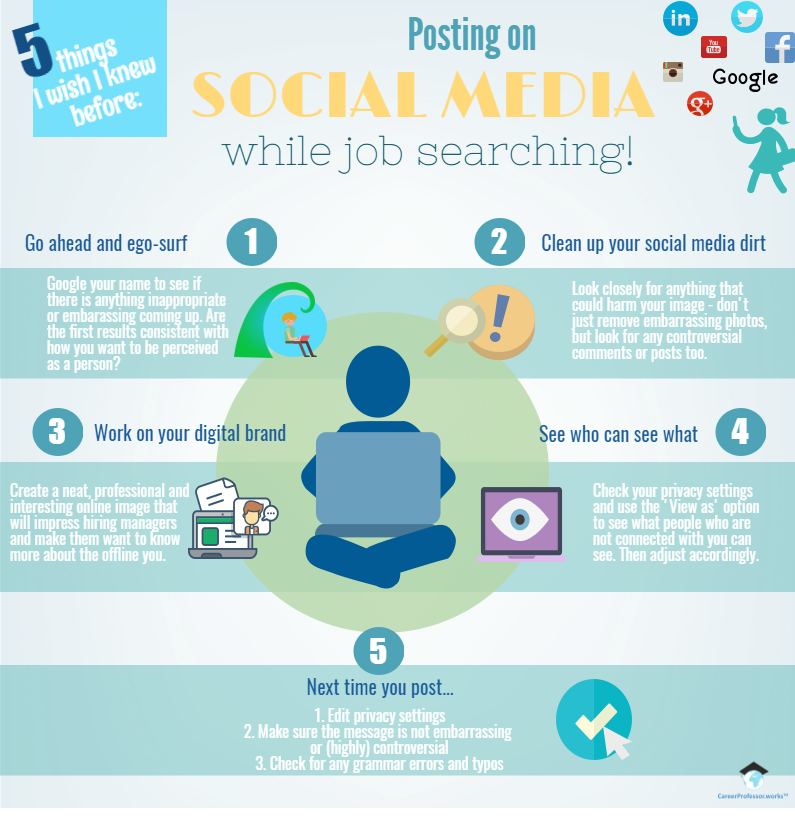 Before hitting that post button, make sure to edit the privacy settings accordingly. If you set your post to ‘public’, think whether it is something you would like having associated with your name and make sure to check for any grammar mistakes and typos – as with your cover letter and CV, language mistakes on social media could jeopardize your chances.